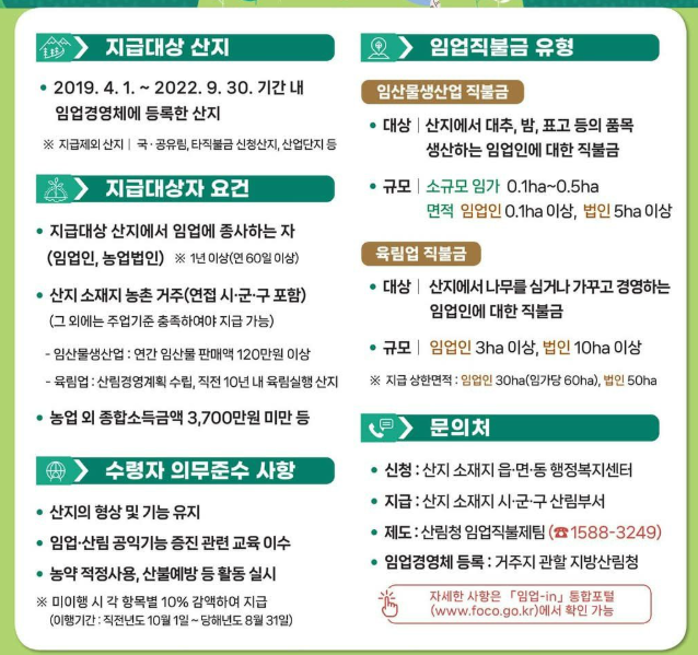 2025 임업·산림 공익직접지불금(임업직불금) - 지급 기준, 지급액, 지급예시 정리