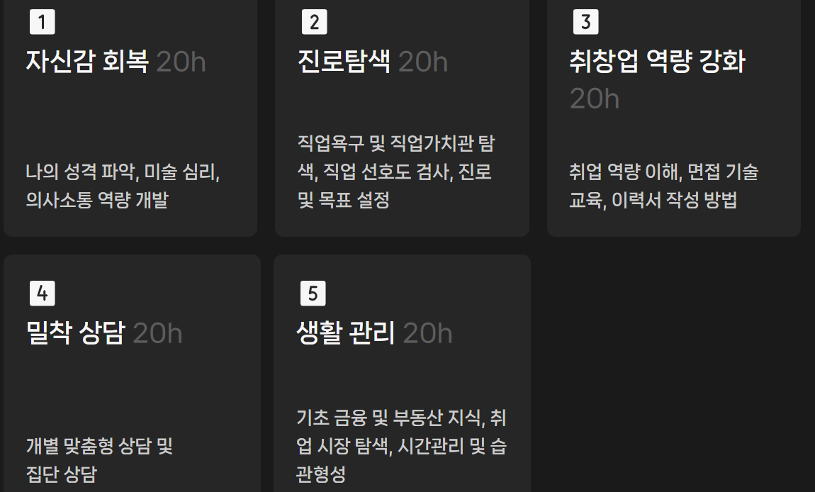 교육 프로그램을 통해 진로 탐색, 취·창업 역량 강화, 심리 상담 등을 지원하며, 일정 조건을 충족하면 최대 300만 원의 인센티브도 받을 수 있습니다