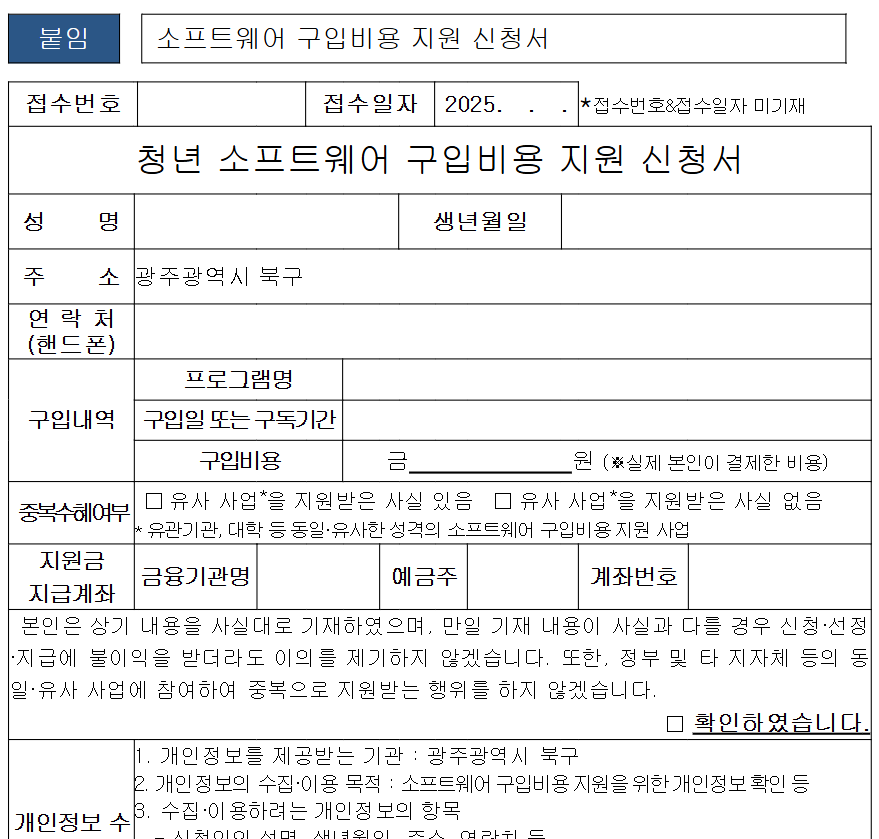 | 사업명 | 2025년 광주 북구 청년 소프트웨어 구입비용 지원사업 |