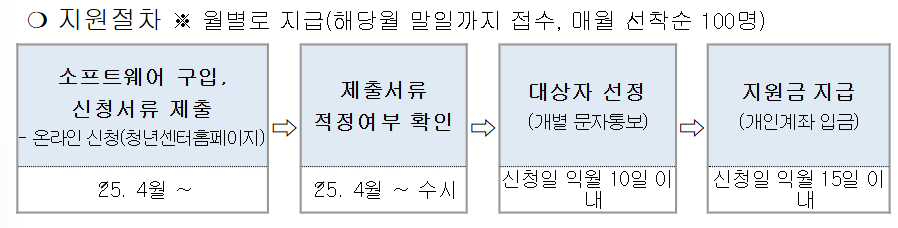 | 선정 방식 | 제출서류 충족순 선착순 (매월 100명 내외) |