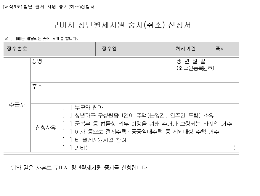 ※ 신청서 양식은 구미시청 홈페이지에서 다운로드 가능