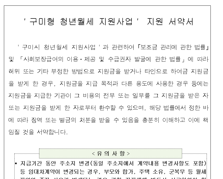 이번에는 구미시 청년 월세 지원 사업을 가져와 봤습니다.