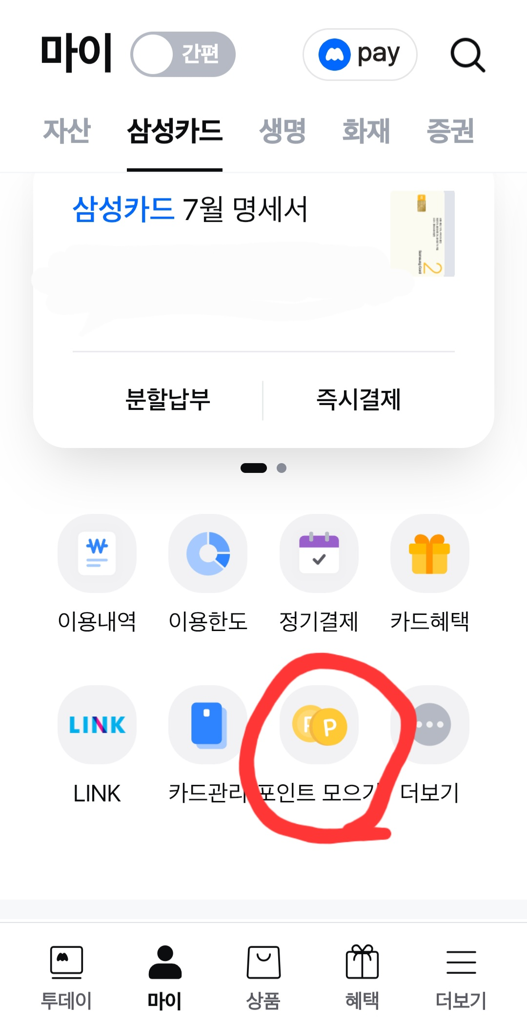 2. (삼성)카드 탭에서 '포인트모으기' 선택