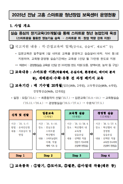 2025.04.21 - [분류 전체보기] - [2025 스마트팜 청년창업 보육센터] 전북 김제 | 사업 개요, 커리큘럼, 신청방법