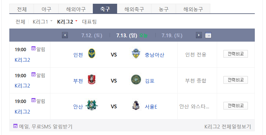 오늘(7/13) 열리는 2025시즌 K리그2 R20 경기 중