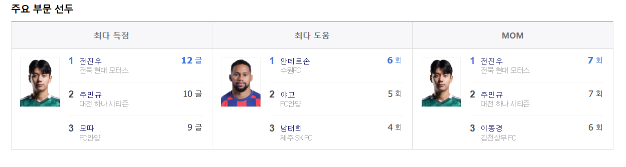 | 하나원큐 축구퀴즈 - 오늘(7/9) 기준 2025시즌 K리그2 에서 득점 1위를 기록하고 있는 선수는 누구일까요? (0) | 2025.07.09 |
