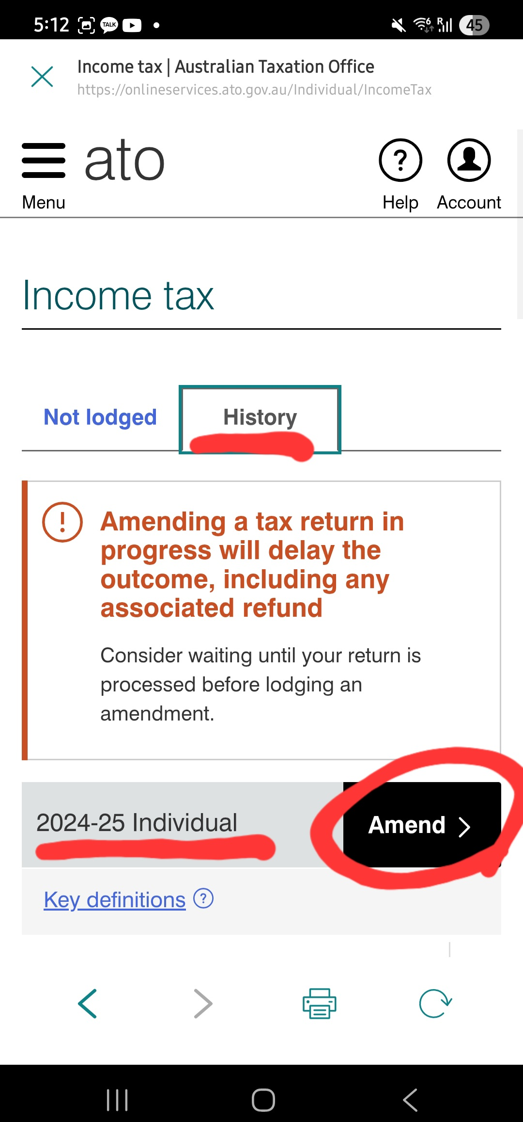 Income tax -> History -> 2024-25 Individual -> Amend