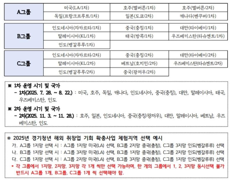 | 사업명 | 2025년 경기청년 해외 취창업 기회 확충사업 |