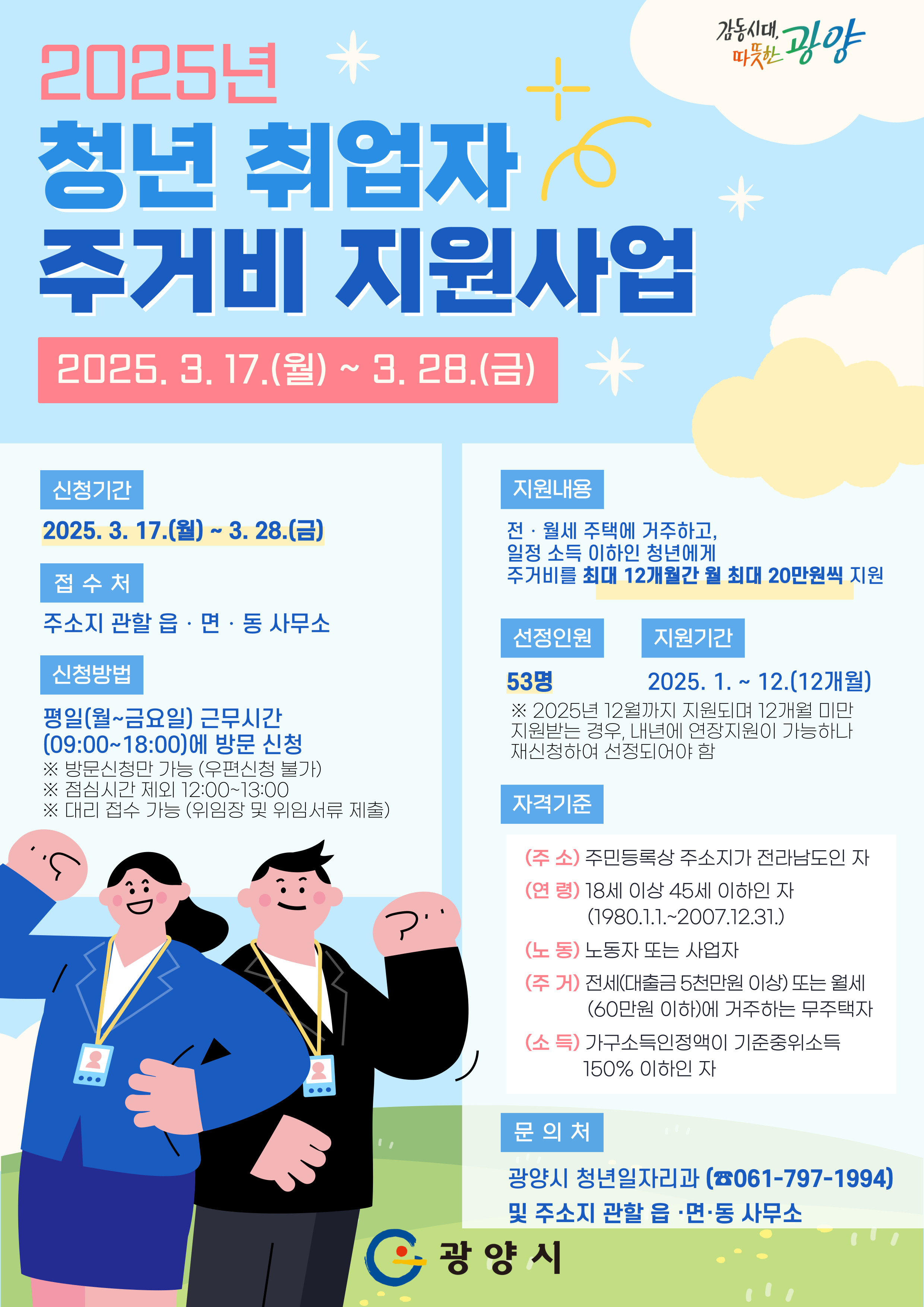 - 방문 신청: 거주지 관할 광양시청 주택과 또는 동주민센터 방문 접수