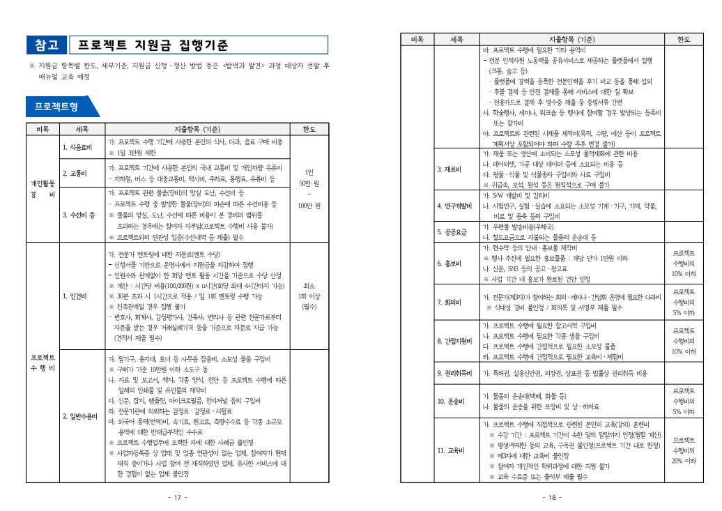 숙박비 단기 합숙, 지역 탐방 시 가능 팀별로 15% 이내