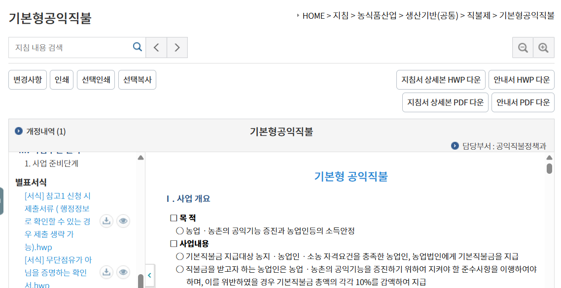 기본직불금 안내서 바로가기. 제출서류 확인 및 다운로드.