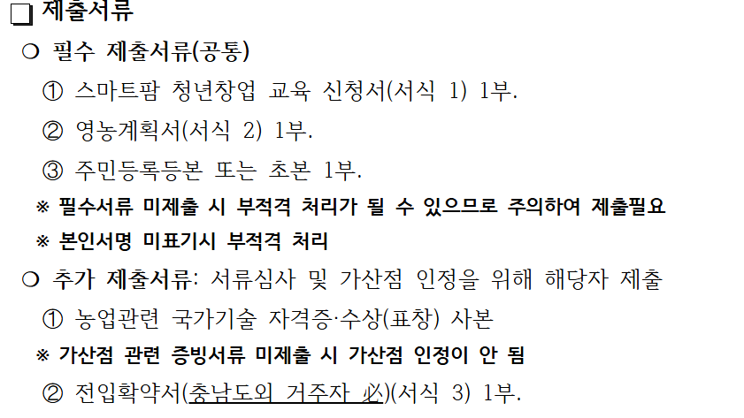 - 선발 시 충남 거주자 또는 실제 창농 의지자에게 우선 가산점이 부여될 수 있습니다.