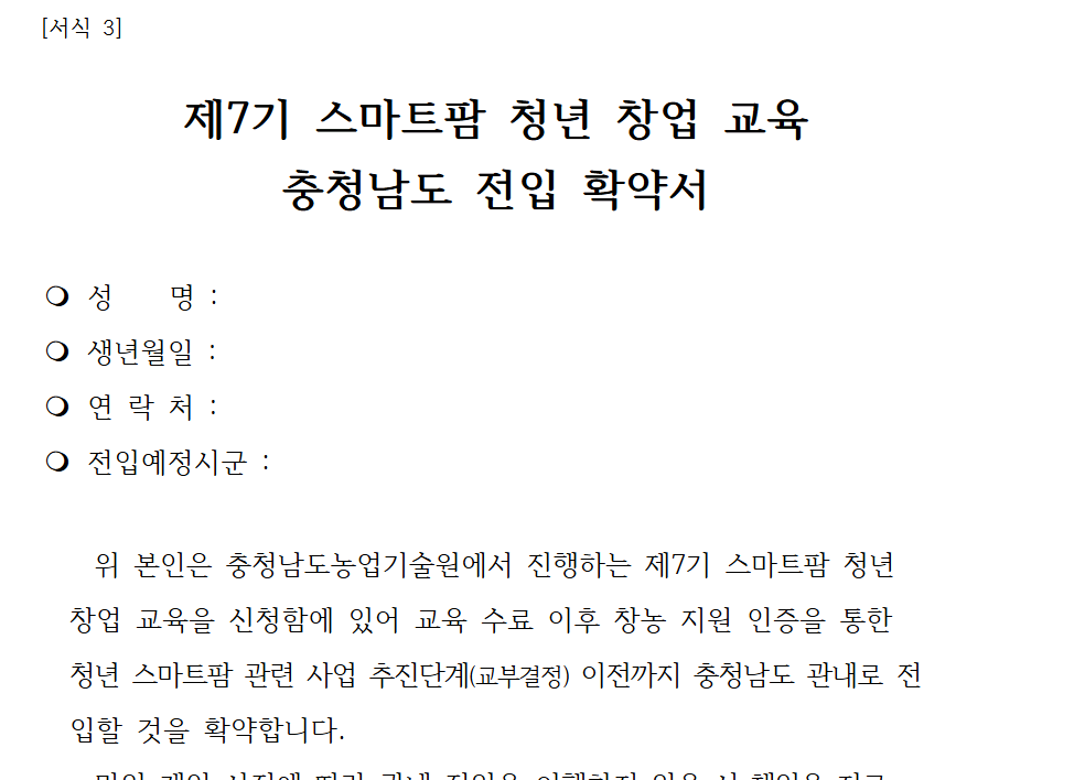 모집공고확인 및 신청서류 다운로드 바로가기 (충남농업기술원)